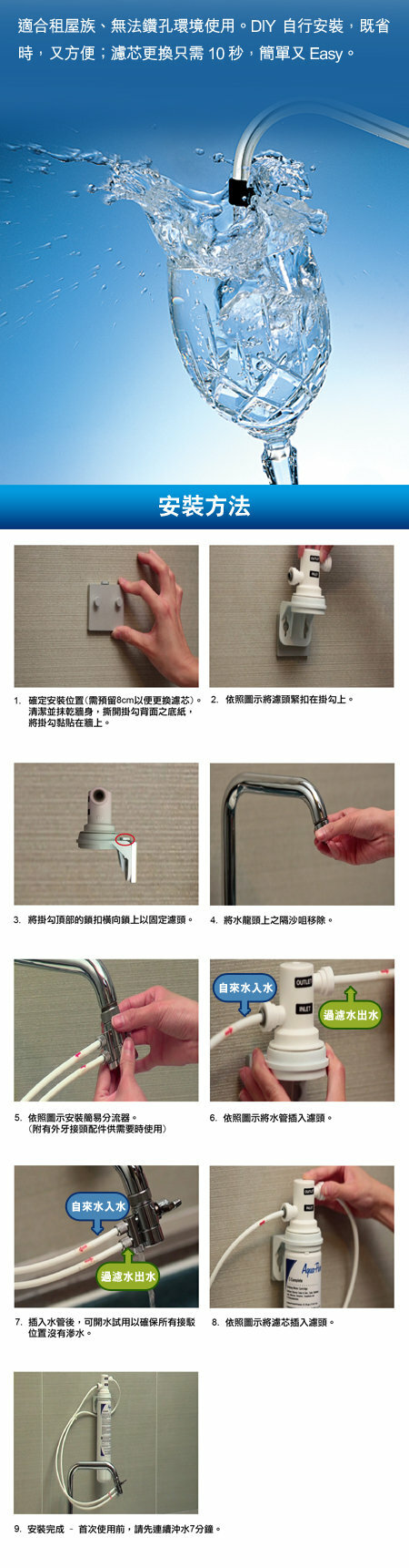 用戶可以簡單地擦拭並使用它,安裝後開水2分鐘就可使用。
