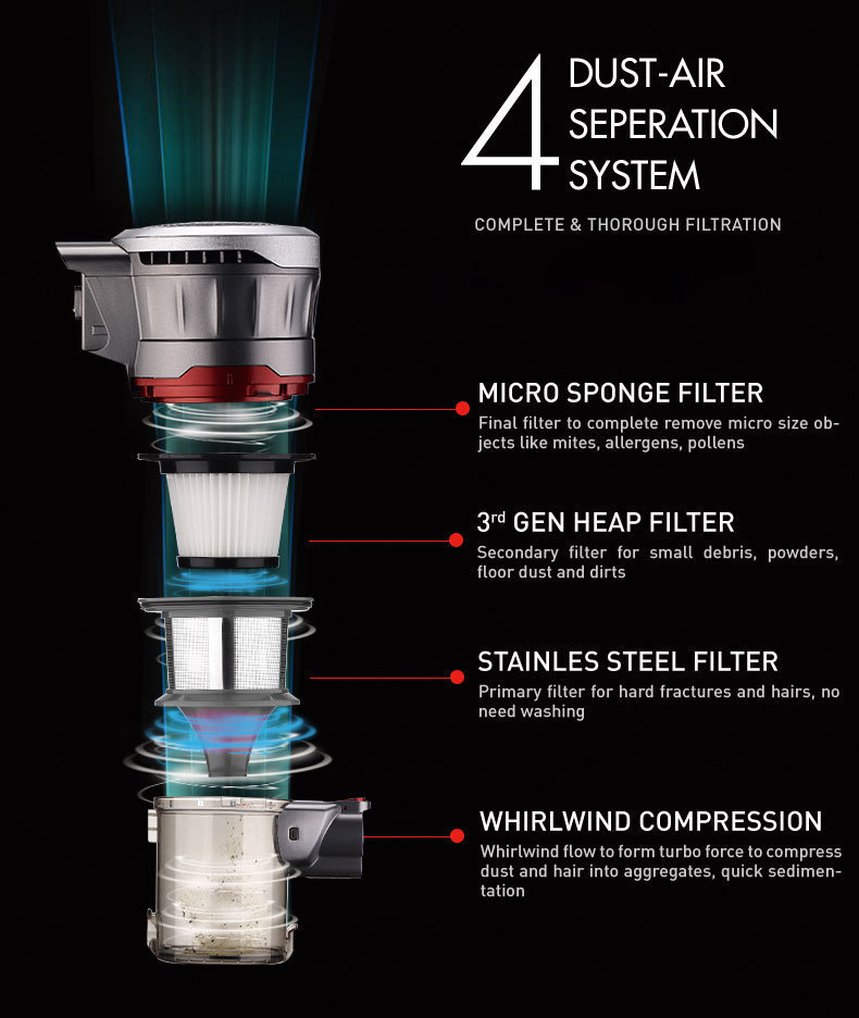 旋風過濾(旋風氣流甩離大顆粒物,塵氣分離,清潔乾淨節能)