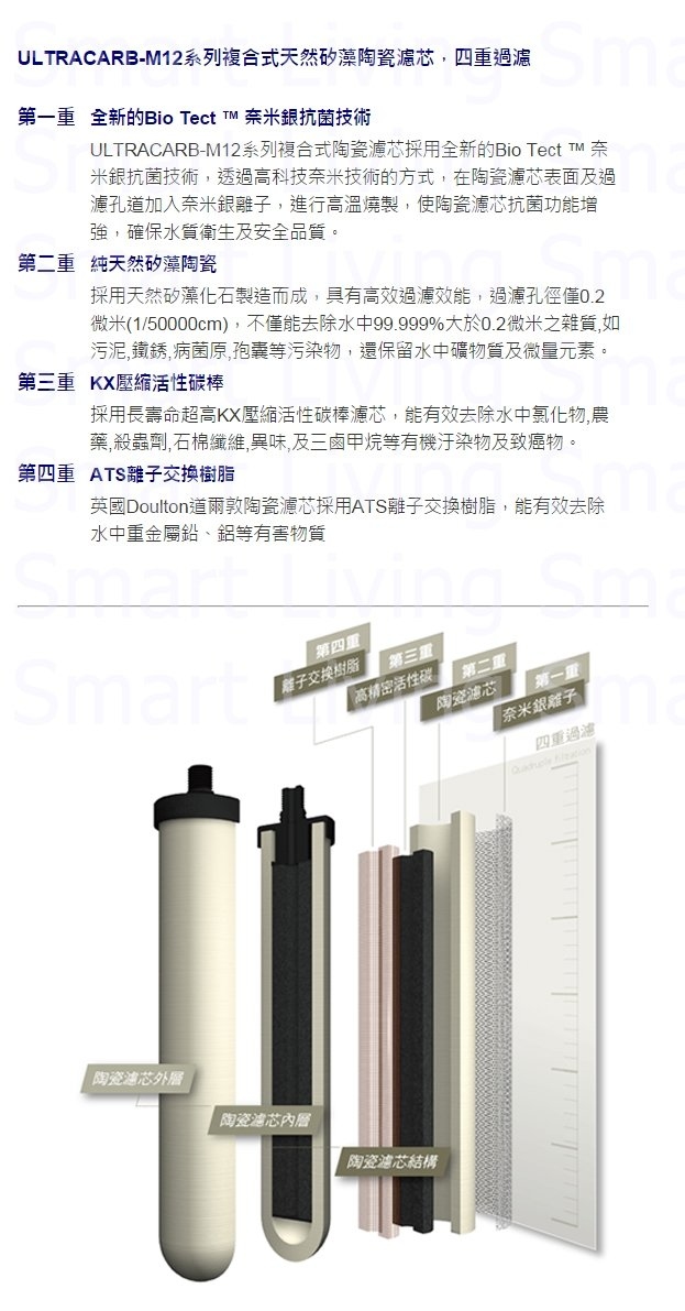 產品特色 * 2504(M12)BTU系列升級版 * 完全兼容2504(M12)BTU濾芯系列 * 英國製造濾芯,優質瓷膽濾芯以100% 天然矽藻瓷素燒而成 * 按照國際質量 ISO9001 生產程序,絕對過濾比率為 99.999% * 政府認證有效過濾重金屬,隔鉛效果佳! * 國際權威美國 NSF 第一級生飲水認證 (包括NSF53 NSF42) * 道爾頓M12系列使用BTU濾芯 2020 年 update |